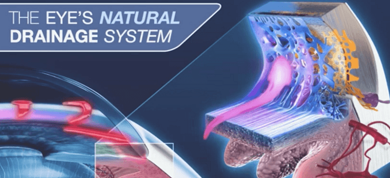 The fluid then drains through the trabecular meshwork, which creates a 360-degree band or drain around the angle of the eye. When the trabecular meshwork is not functioning correctly, the fluid cannot drain, causing the pressure in the eye to increase—a common symptom of the various types of glaucoma.